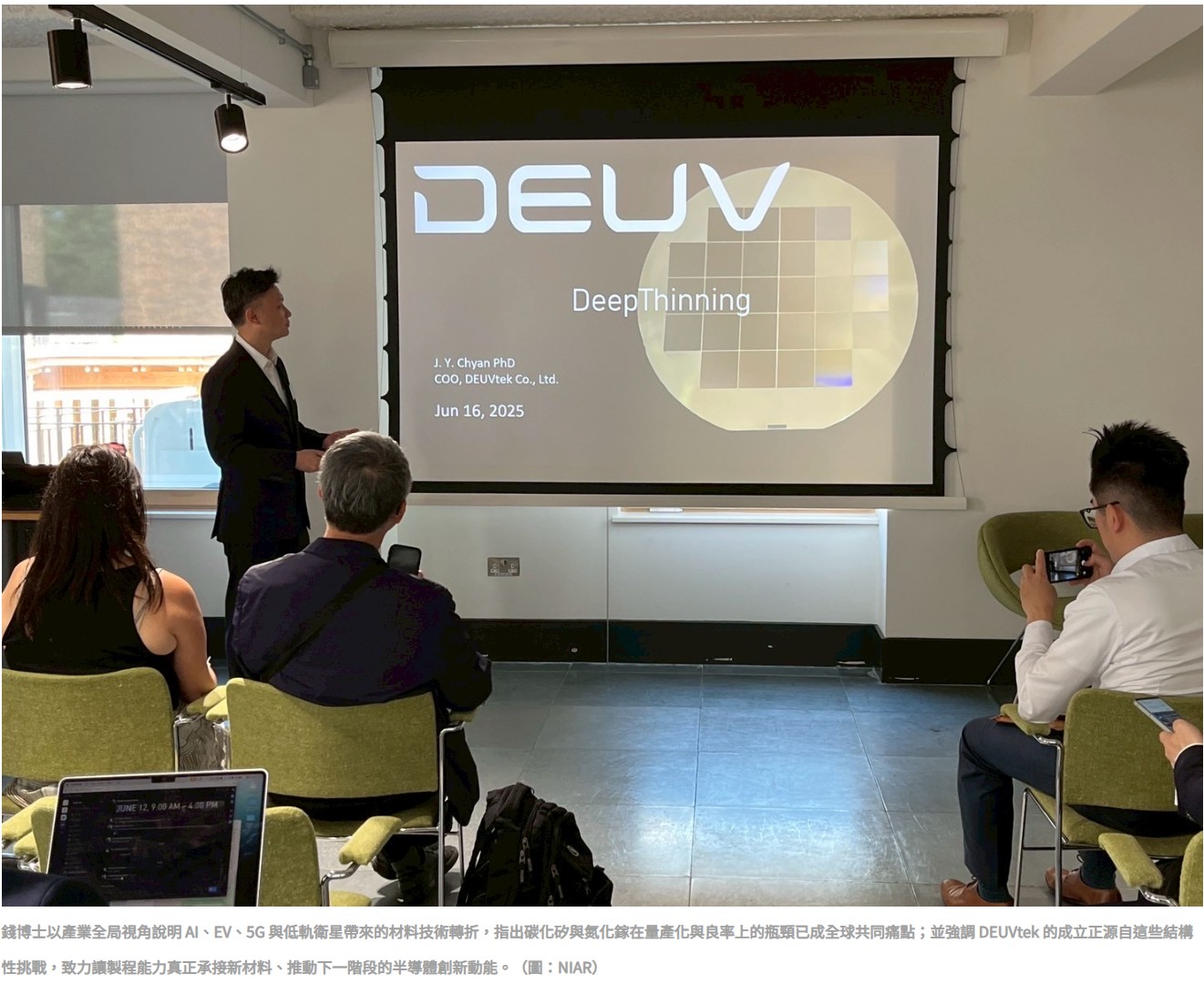 在本次論壇中,DEUVtek(鼎極科技)營運長錢俊逸博士應邀發表演講,分享碳化矽材料革命、永續製造與先進封裝技術趨勢,獲得來自歐洲研究組織與國際產業鏈的高度關注。論壇期間,該活動媒體戰略夥伴英國《The Icons》艾肯仕國際名人誌倫敦採訪小組,也於 Entopia Building 進行本次專訪,完整呈現錢博士對全球半導體生態、永續製造模式與技術創新的深度洞見。